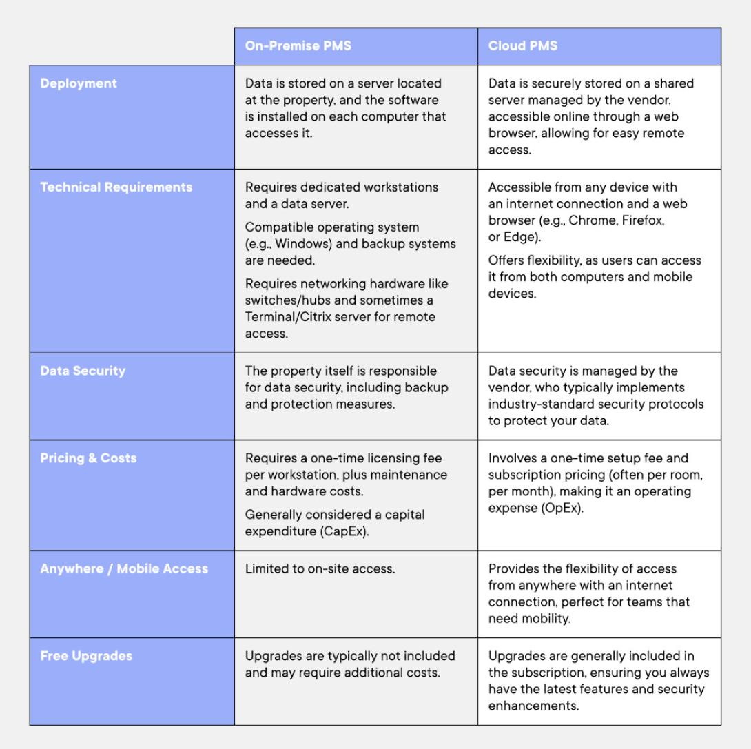 Vor Ort installierte PMS-Software erfordert außerdem eine interne Speicherung und Wartung, wodurch die Verantwortung für die Instandhaltung des Systems bei der Immobilie liegt.